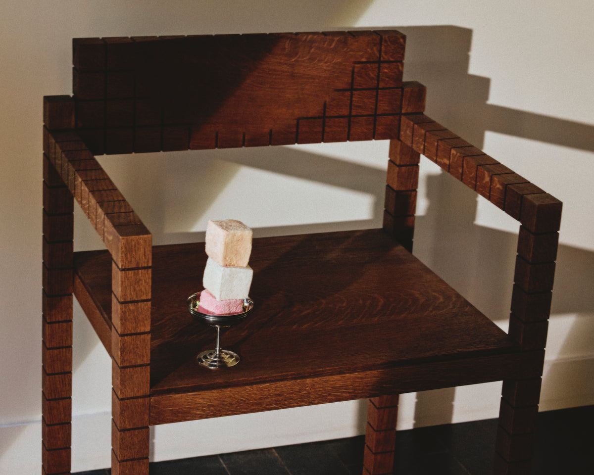 En su esencia se encuentra la Silla Sencilla, una reinterpretación refinada de la clásica silla de madera: sólida, apilable y versátil. Junto a ella, las piezas de Mosaico exploran la geometría, el ritmo y la estructura como lenguaje estético, celebrando la fuerza arquitectónica y la elegancia atemporal.