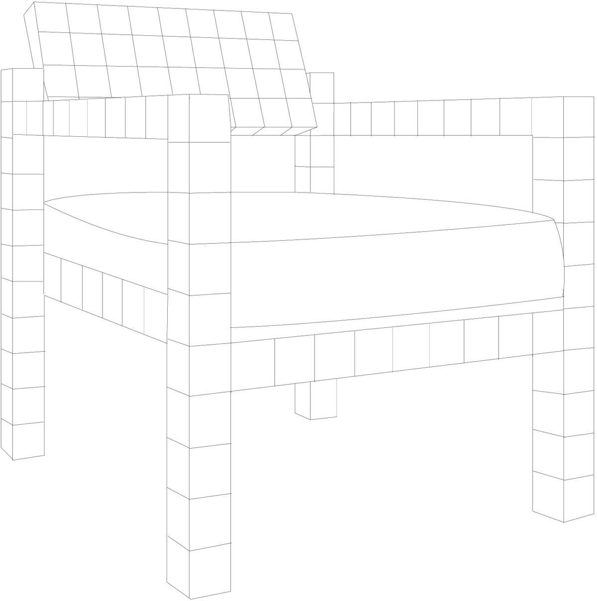 Butaca Mosaico funciona tanto en salones residenciales como en espacios de hostelería u oficinas. Su asiento generoso y el respaldo envolvente favorecen una postura relajada, mientras que su base sólida aporta estabilidad y aplomo visual.